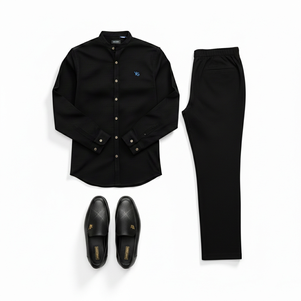 اگر به‌دنبال یک ست آماده، شیک و کاربردی برای محل کار، قرارهای دوستانه یا مهمانی‌های نیمه‌رسمی هستید، پکیج مدل Vafa انتخابی هوشمندانه برای شماست. این ست شامل پیراهن مشکی، شلوار بنگال کش و کالج مشکی است که به‌خوبی با یکدیگر هماهنگ شده‌اند و استایلی جذاب و مردانه برایتان می‌سازند.